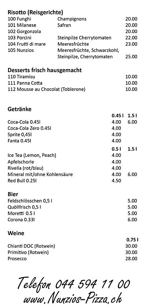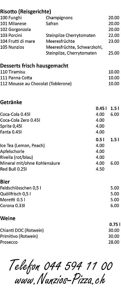 Copyright 2021 www.Nunzios-Pizza.ch - Zugerstrasse 3 - 8820 Wädenswil - Telefon 044 594 11 00 - Email: info@nunzios-pizza.ch - Bilder Adobestock lizensiert und Pixabay